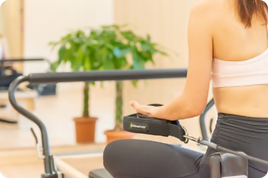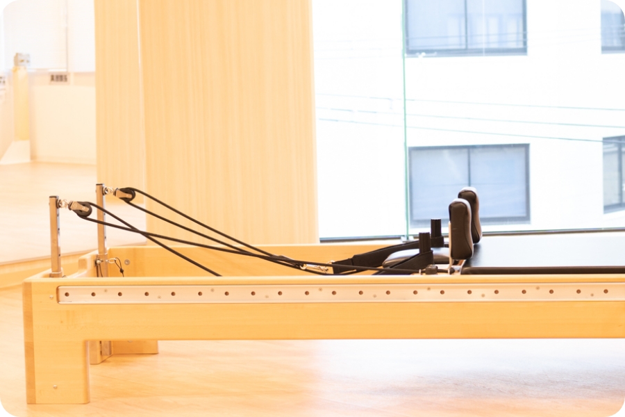 ピラティスマシンは筋トレのマシンとは違い、エクササイズの補助として使用。