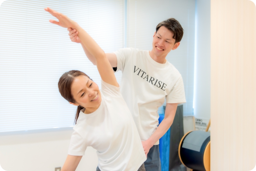 茨木地域で「VITARISEがいいよ」と口コミで広がり、人気を集めているのは、「身体に優しく、確実に機能が回復する」安心感があるからです。医療連携の知見を応用し、年齢や運動経験に関係なく、安全に健康寿命を延ばすサポートをしています。